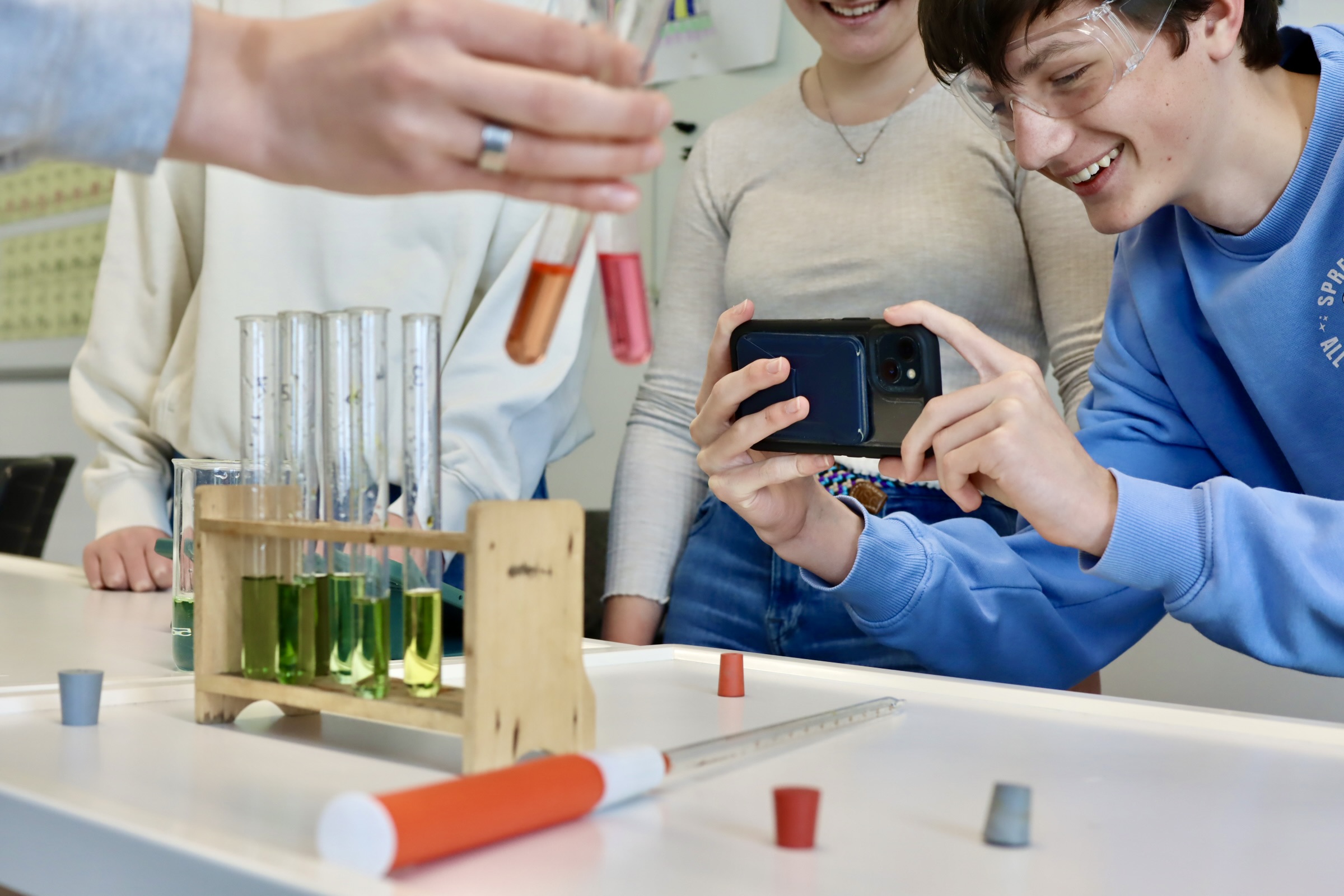 Ergänzend gibt es vielfältige Möglichkeiten, Chemie über den Unterricht hinaus zu erleben. Dazu zählen Exkursionen, etwa zum Liebig-Museum oder zu Unternehmen wie Merck oder Schunk, sowie die Teilnahme an Wettbewerben wie der Chemie-Olympiade oder dem Young Chemist Award der Justus-Liebig-Universität Gießen. Eine enge Kooperation mit dem Chemischen Institut der JLU eröffnet Oberstufenschülerinnen und -schülern die Möglichkeit, an Praktika teilzunehmen, eigene Projekte zu verfolgen oder wissenschaftliche Arbeiten in universitärem Umfeld zu entwickeln.