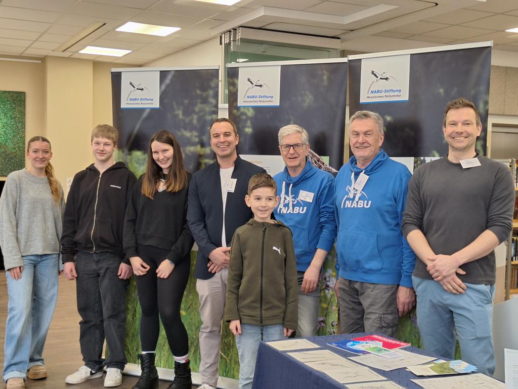 Das Gruppenfoto zeigt die teilnehmenden Schülerinnen und Schüler gemeinsam mit ihrem Lehrer sowie das Team vom NABU-Stadtverband Wetzlar.