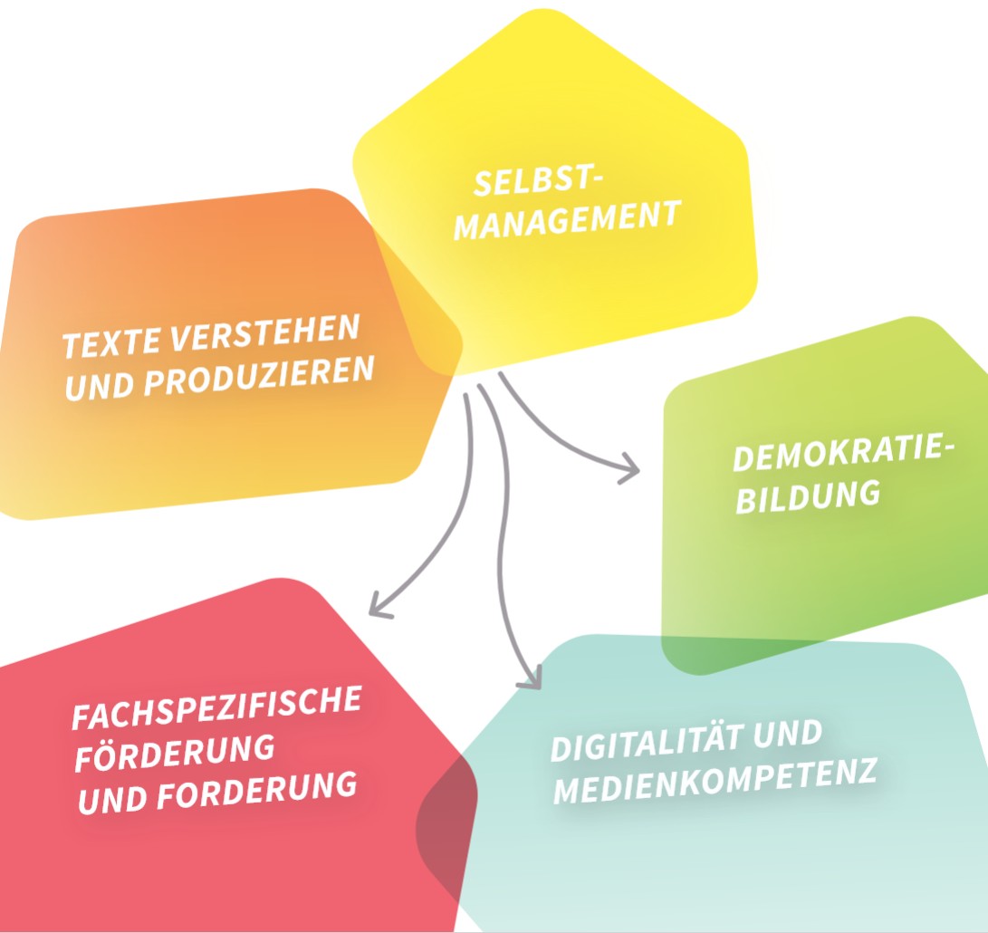 Unsere Module auf einen Blick: Von Selbstmanagement über Textkompetenz, digitale Fähigkeiten und Demokratiebildung bis hin zu fachlicher Förderung – eine große Vielfalt der Angebote, mit denen wir individuell beim Start in die Oberstufe unterstützen.